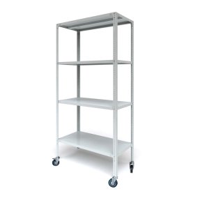 Нагрузка на полку до 150 кг. Крепление: на болтах. Комплектация: Стойка, полка, уголки, крепёж, уголок (кронштейн) для колес, 2 поворотных колеса, 2 не поворотных колеса с тормозом. Стеллаж металлический, сборно-разборный, на болтах. Распределенная нагрузка на полку - до 120 кг. Полки регулируются по высоте с шагом 25 мм. Стойки укомплектованы металлическими кронштейнами (цинк) и 4 колеса (2 из которых поворотные, а 2 не поворотные с тормозом). Стеллаж быстросборный изготовлен из высококачественной стали. Покрытие порошковое полимерное. Цвет светло-серый(RAL-7035). В комплект стеллажа входят метизы, уголки для крепления верхних и нижних полок. Стеллаж сертифицирован. Гарантийный срок -12 месяцев. Дополнительно стеллаж можно укомплектовать планками и разделителями